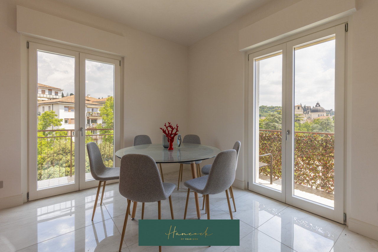 Situato nel prestigioso quartiere residenziale di Borgo Trento, a due passi da Ponte Pietra - e con una spettacolare vista panoramica su Castel San Pietro - l'appartamento offre uno spazio generoso e finiture impeccabili. Con una superficie di circa 150 mq, la proprietà - completamente ristrutturata - vanta un design moderno e funzionale. Dispone di ampi ambienti luminosi che includono un generoso soggiorno con ampio balcone panoramico, la zona pranzo e la cucina abitabile completa di elettrodomestici high-end. Le 3 camere da letto - tutte con bagno privato - sono spaziose e accoglienti e godono di armadi su misura per un'organizzazione ottimale dello spazio. I bagni sono rifiniti con ricercati rivestimenti in maioliche. Al piano superiore, un'originale spazio mansardato può ospitare una stanza extra o una zona giochi e studio. L'appartamento si trova all'interno di un complesso ben curato e dotato di ascensore, offrendo agli abitanti la comodità della vicinanza dei servizi essenziali come negozi, scuole, ristoranti e strutture sanitarie. La posizione strategica garantisce un facile collegamento anche a piedi con il centro storico della città.