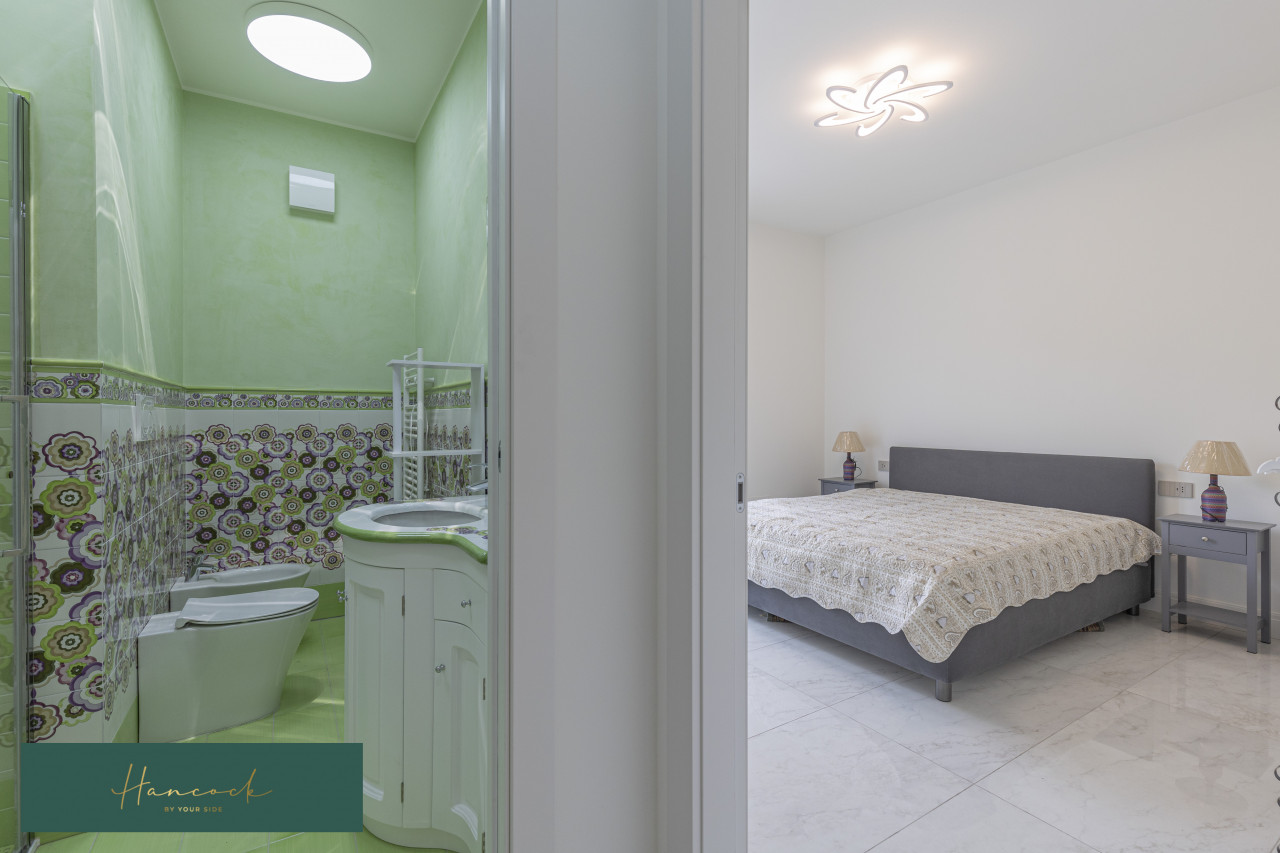 Pavimenti in marmo e finestre panoramiche donano charme ed eleganza agli interni. Tapparelle motorizzate, zanzariere, ante a ribalta. Gli ambienti living offrono una sensazione accogliente, ideale per momenti conviviali o relax solitario.